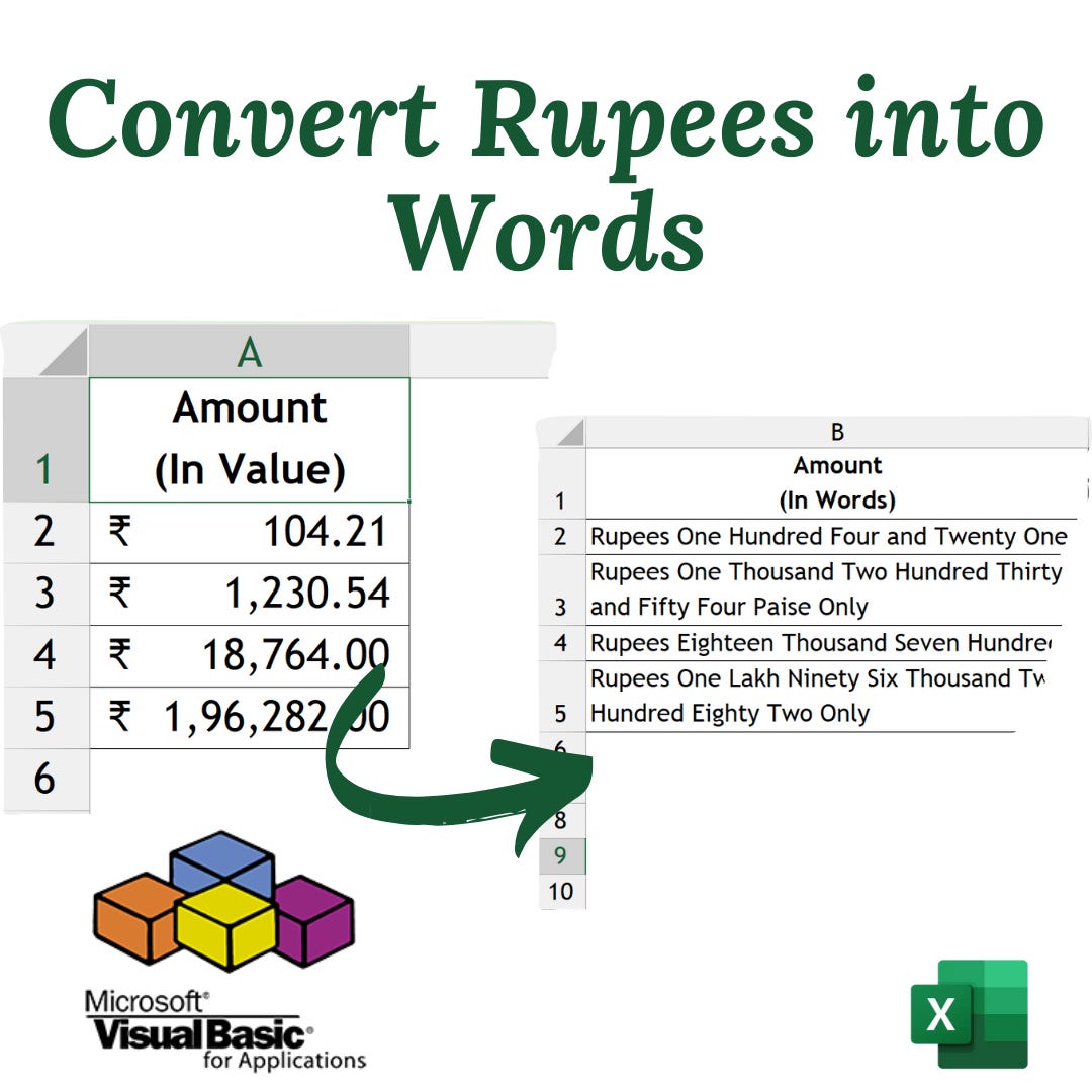 While making an invoice, receipt, voucher, or cheque template in Microsoft Excel, converting numerical Indian Rupees to words will come in helpful.
