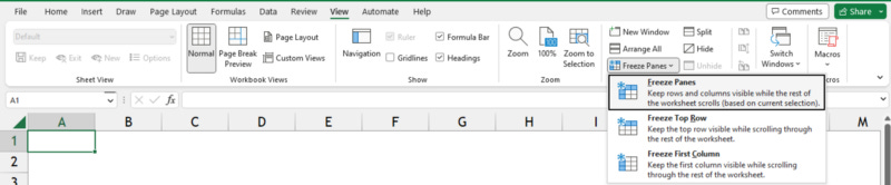 Freeze worksheet rows and columns