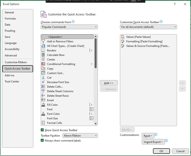 Customize the Quick Access toolbar