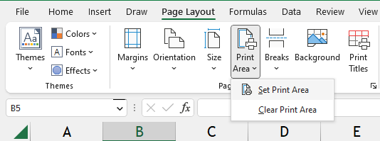 Set a print area