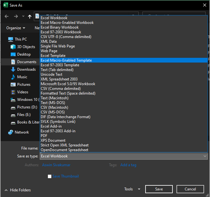 Navigation: File >> Save As >> Save as Type;